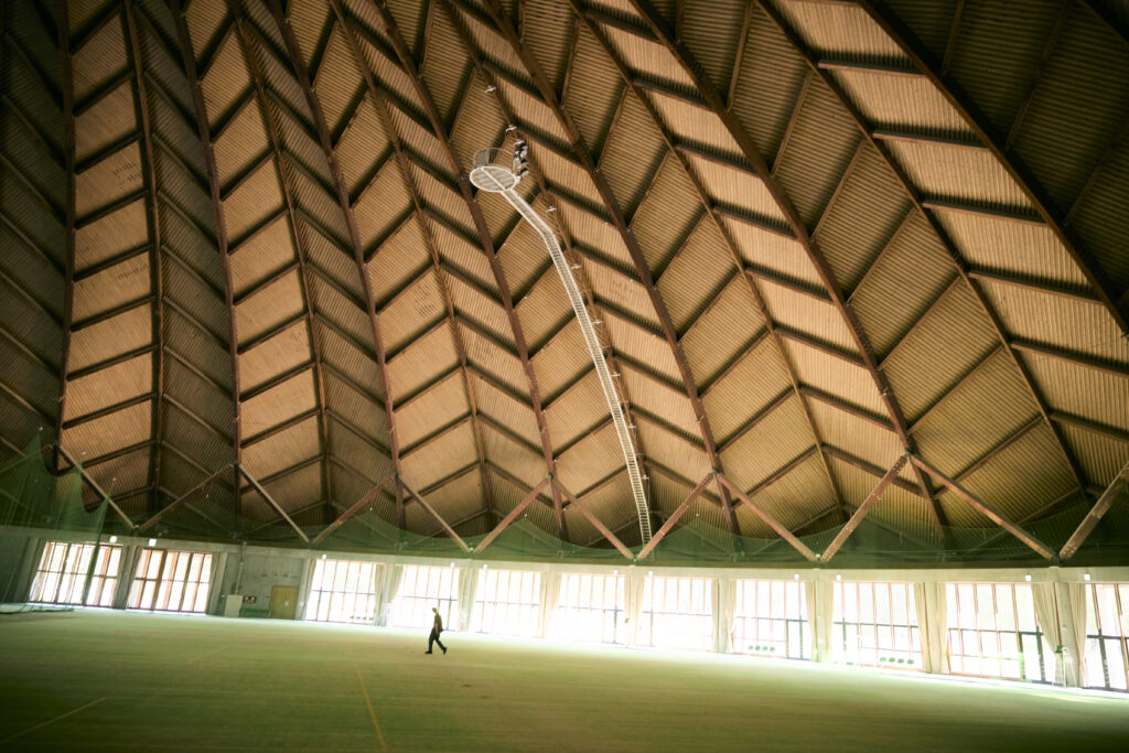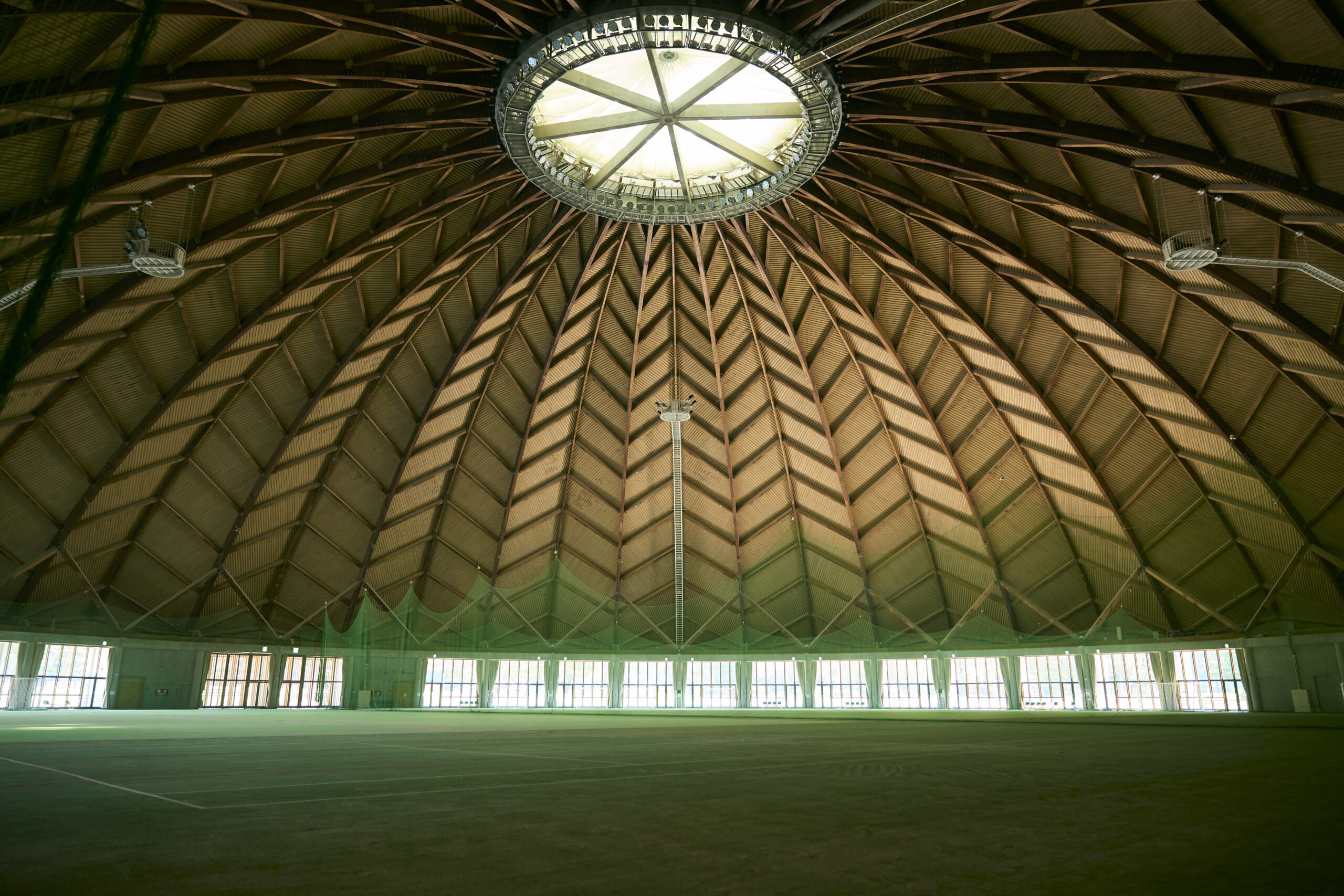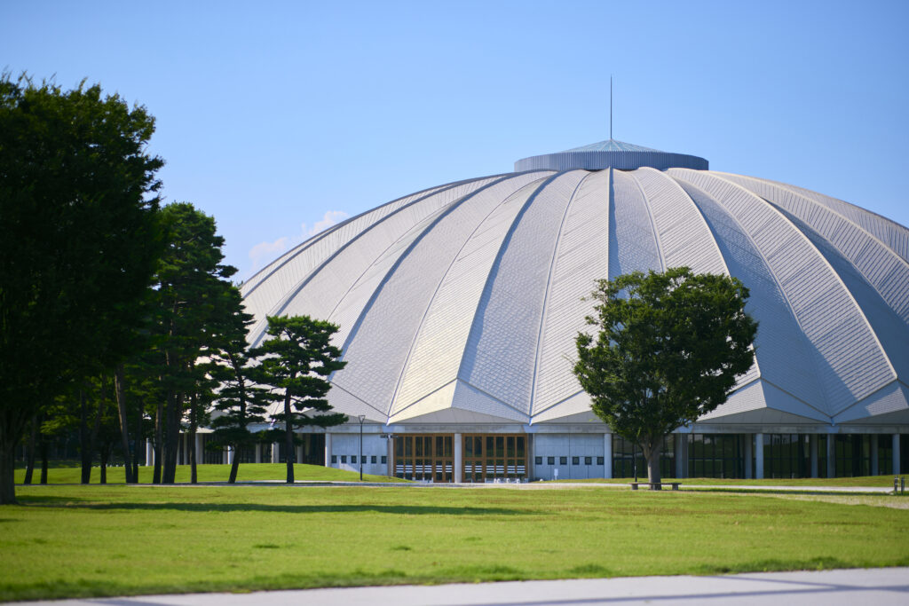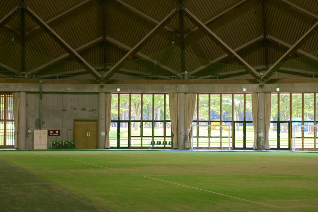 会場内は芝生グラウンドがステージ及び観客席となっており、座席のご用意はなくフリーエリアとなっております。(完全屋内)